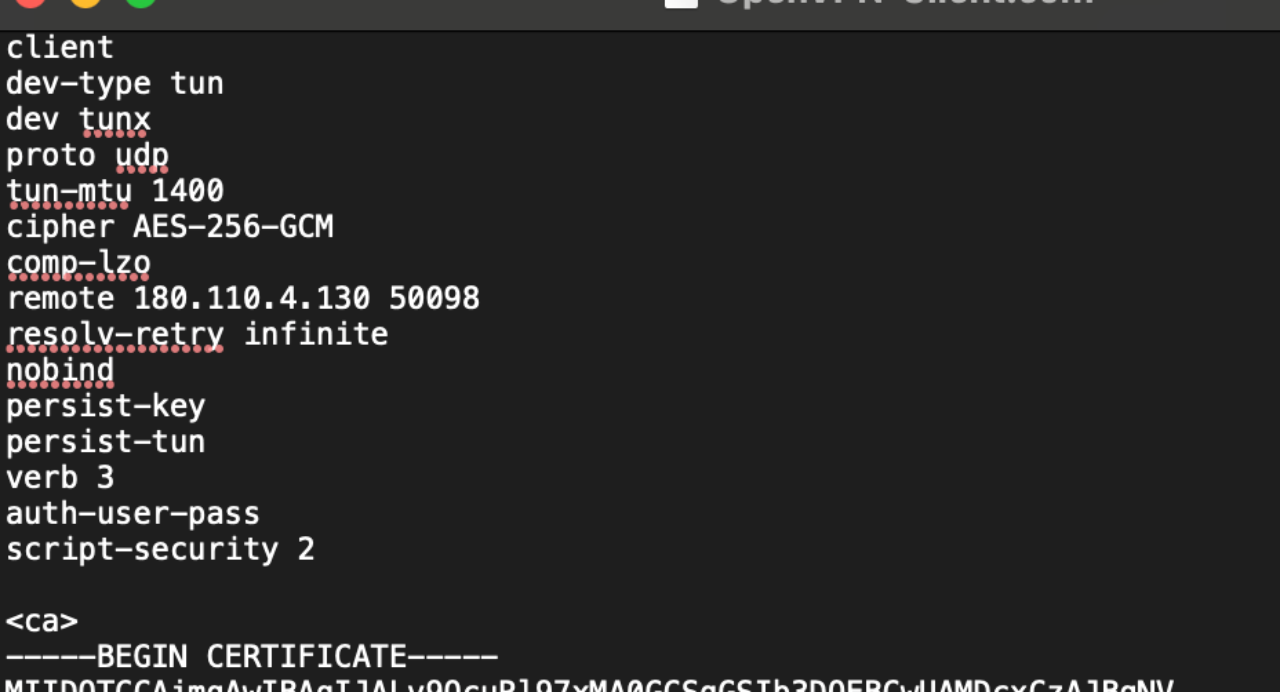 OpenVPN2.0后引入了用户名/口令组合的身份验证方式,它可以省略客户端证书,但是仍有一份服务器证书需要被用作加密。 OpenVPN所有的通信都基于一个单一的IP端口, 默认且推荐使用UDP协议通讯,同时TCP也被支持。OpenVPN连接能通过大多数的代理服务器,并且能够在NAT的环境中很好地工作。服务端具有向客 户端“推送”某些网络配置信息的功能,这些信息包括:IP地址、路由设置等。
