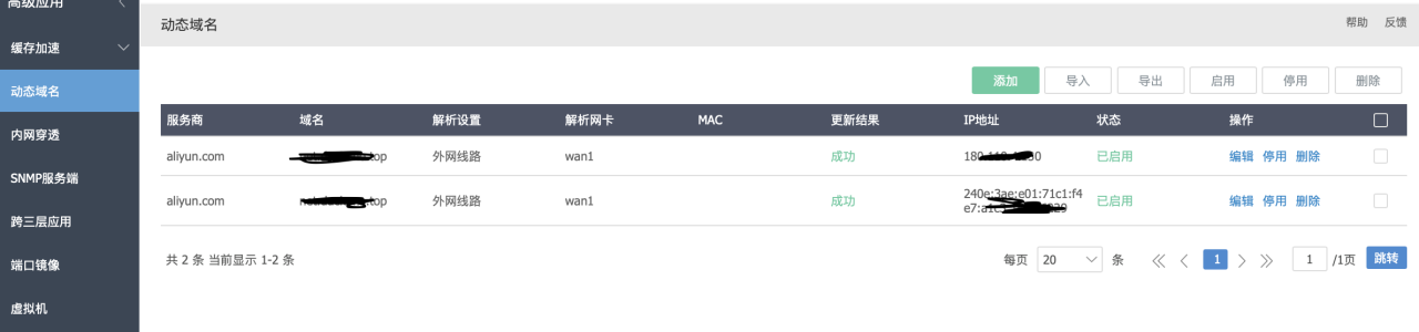 高级应用> 动态域名(有公网ipv4的用公网ipv4的动态域名,没有ipv4的用ipv6的动态域名)