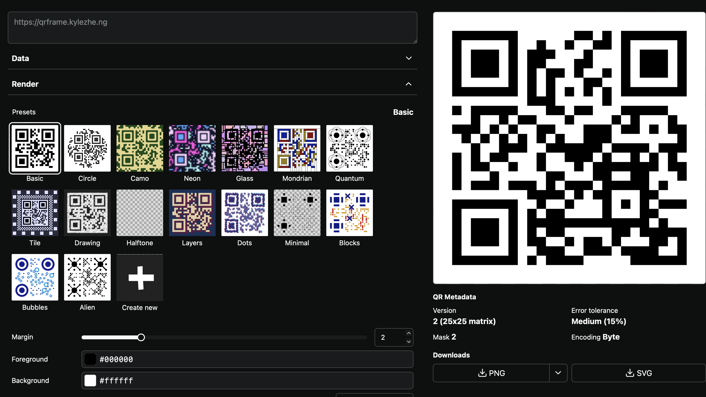 qrframe 是一款在线开源二维码生成器,使用 JavaScript 代码生成美观的二维码。它受 QRBTF 和 Anthony Fu 的 QR Toolkit 启发,支持自定义数据(编码模式、版本、容错等)以及外观设计(通过预设或代码编辑器自定义 UI 参数)。其核心技术包括使用 Rust 库 fuqr 作为 WASM 导入,支持 SVG 和 PNG 格式。所有代码直接在浏览器中运行,没有沙盒或其他限制,确保快速响应与安全性。